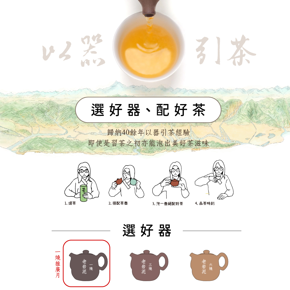 2018年,更將「以器引茶」概念細緻化,透過「品茗五要訣與識茶圖」