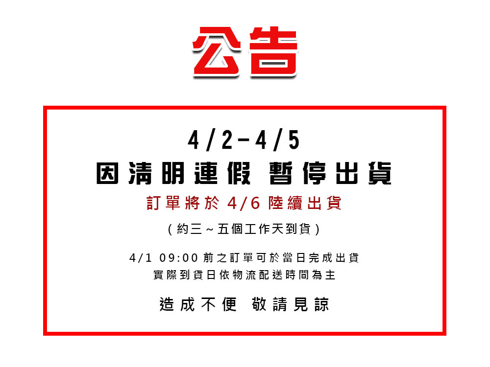 訂單將於 4/6 陸續出貨 ( 約 3-5 個工作天 )