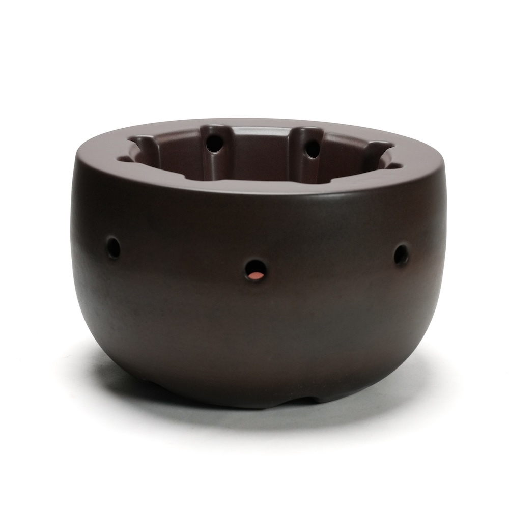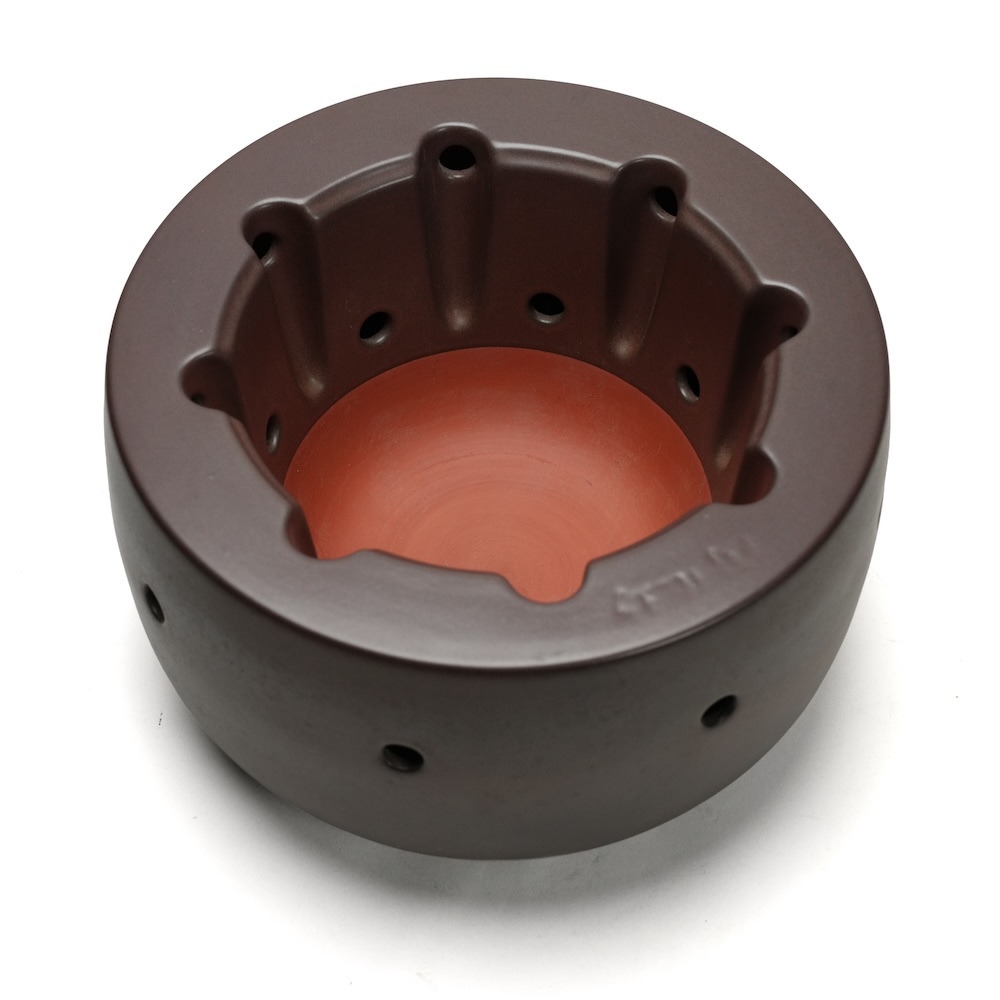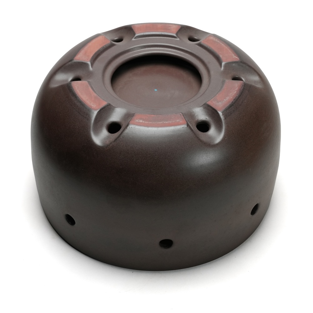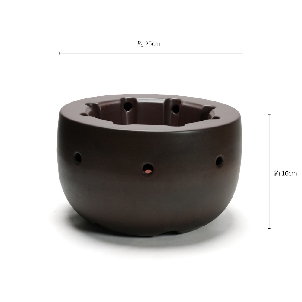 缽身側面與內壁精準鑽設 16 個透風孔,獨特導氣設計能有效引領空氣對流,確保炭火在有限空間內仍能完全燃燒,同時將「提高室內溫度」轉化為「茶席間的融融暖意」。