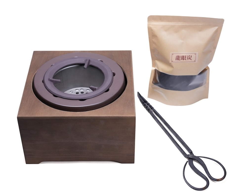 炭火配件一次到位:隨附炭火鉗+龍眼炭,開箱即可煮茶