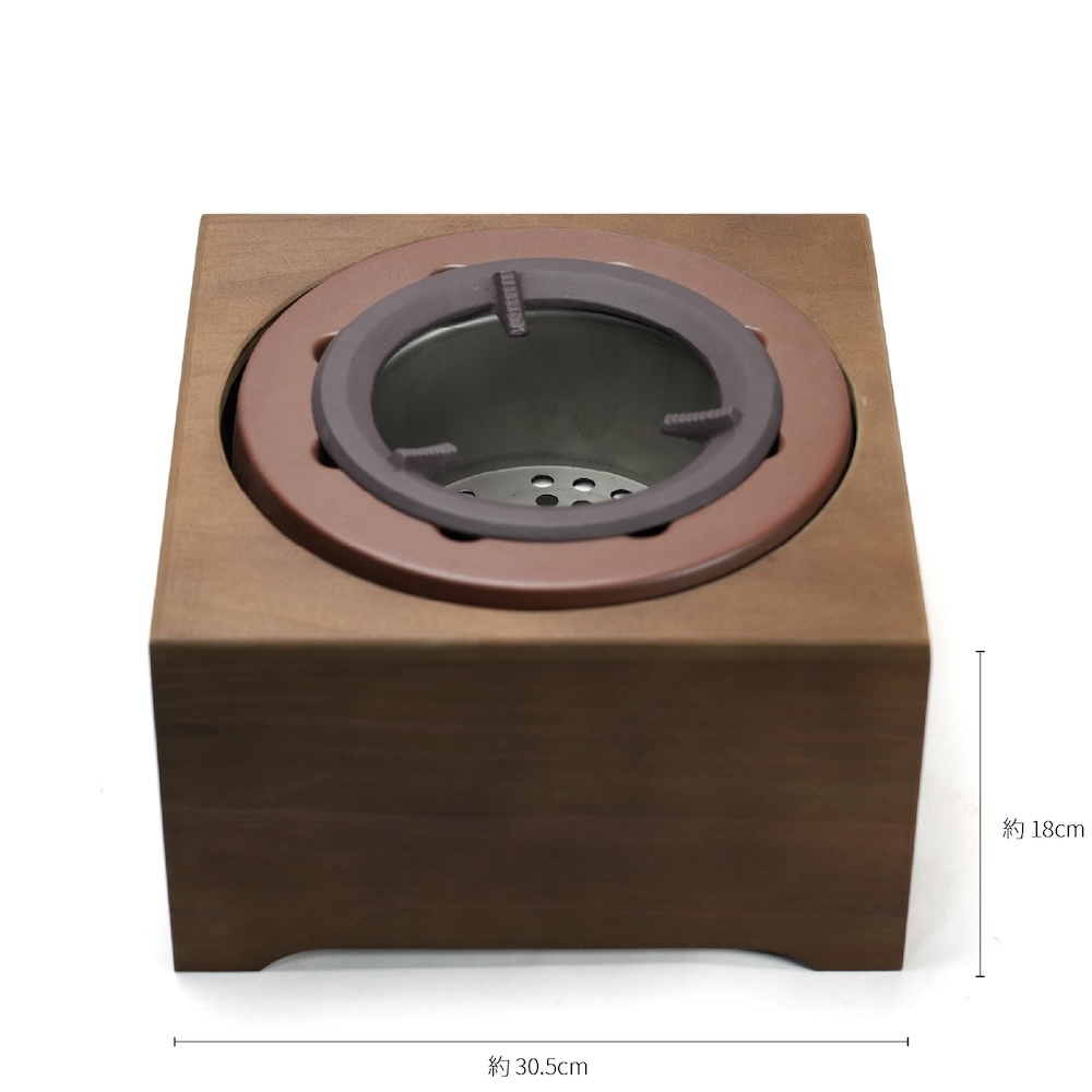 不銹鋼內襯、方型收納盒、陶缽、壺座、木炭、火夾