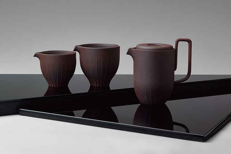 2.茶海壺嘴、杯緣凹口巧思設計,可疊放操作,以空間的疏密排列,靈活豐富視覺變化。