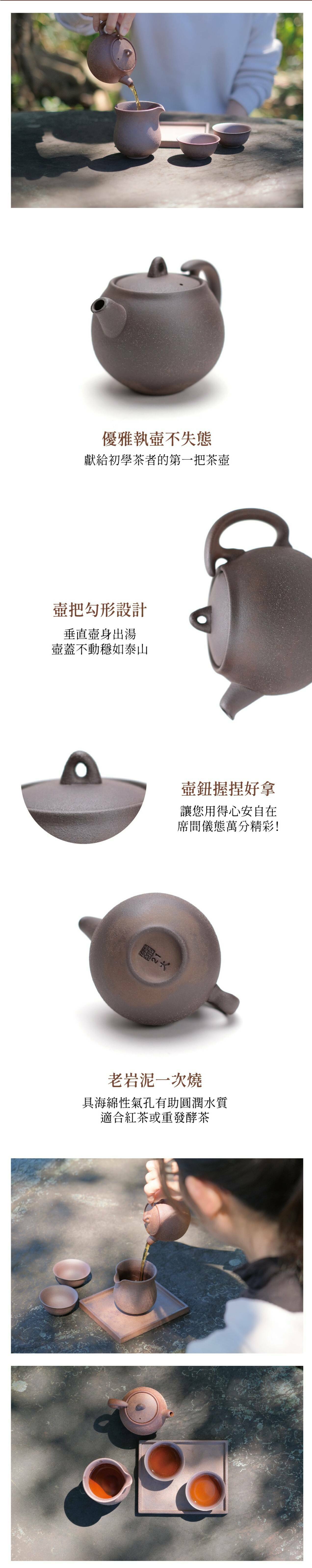 老岩泥茶具為天然礦物結合陶土調配,經高溫氧化還原燒製而成。