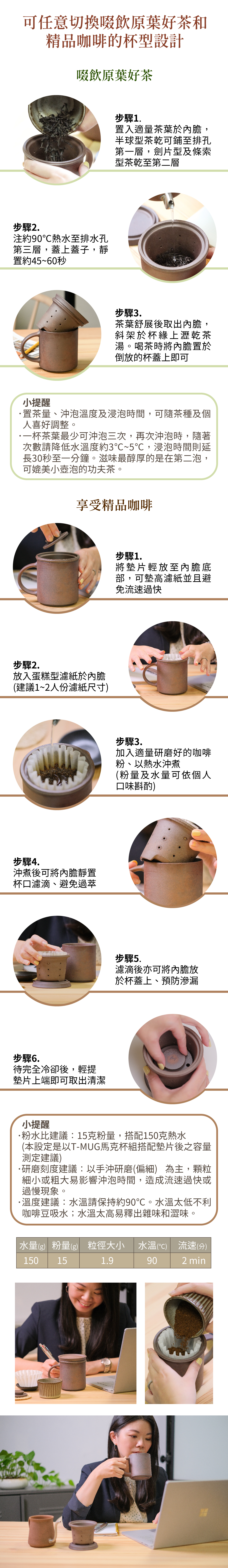 3. 一杯二用,搭配內膽喝好茶,搭配墊片和蛋糕型濾紙即可沖煮咖啡