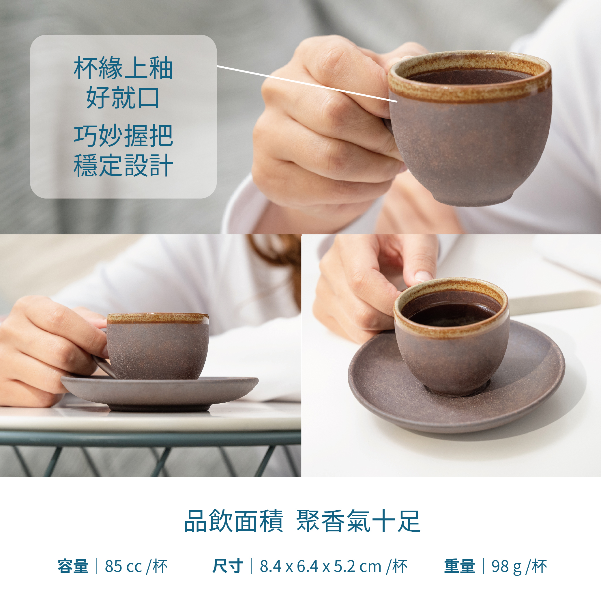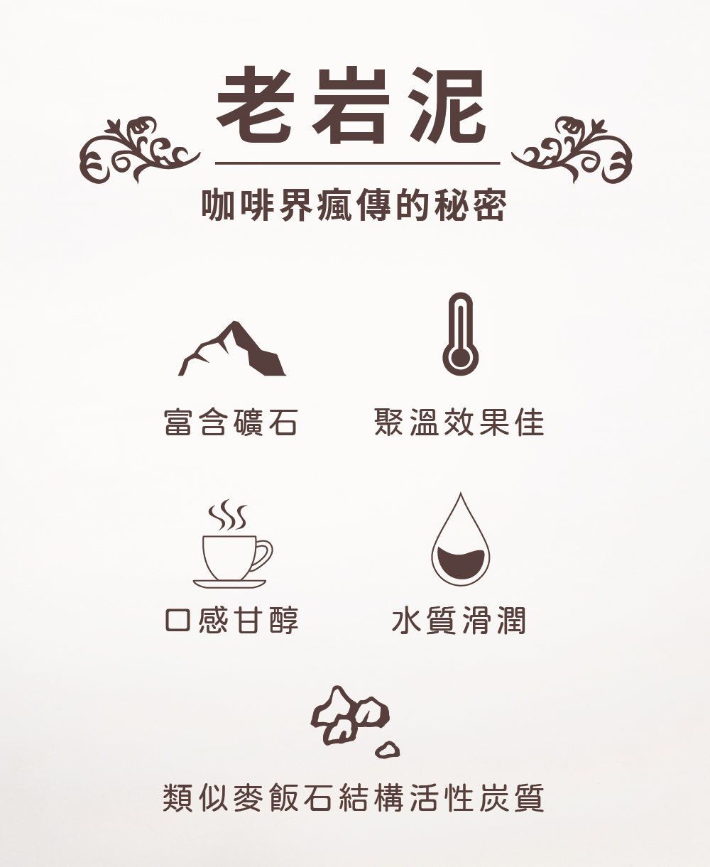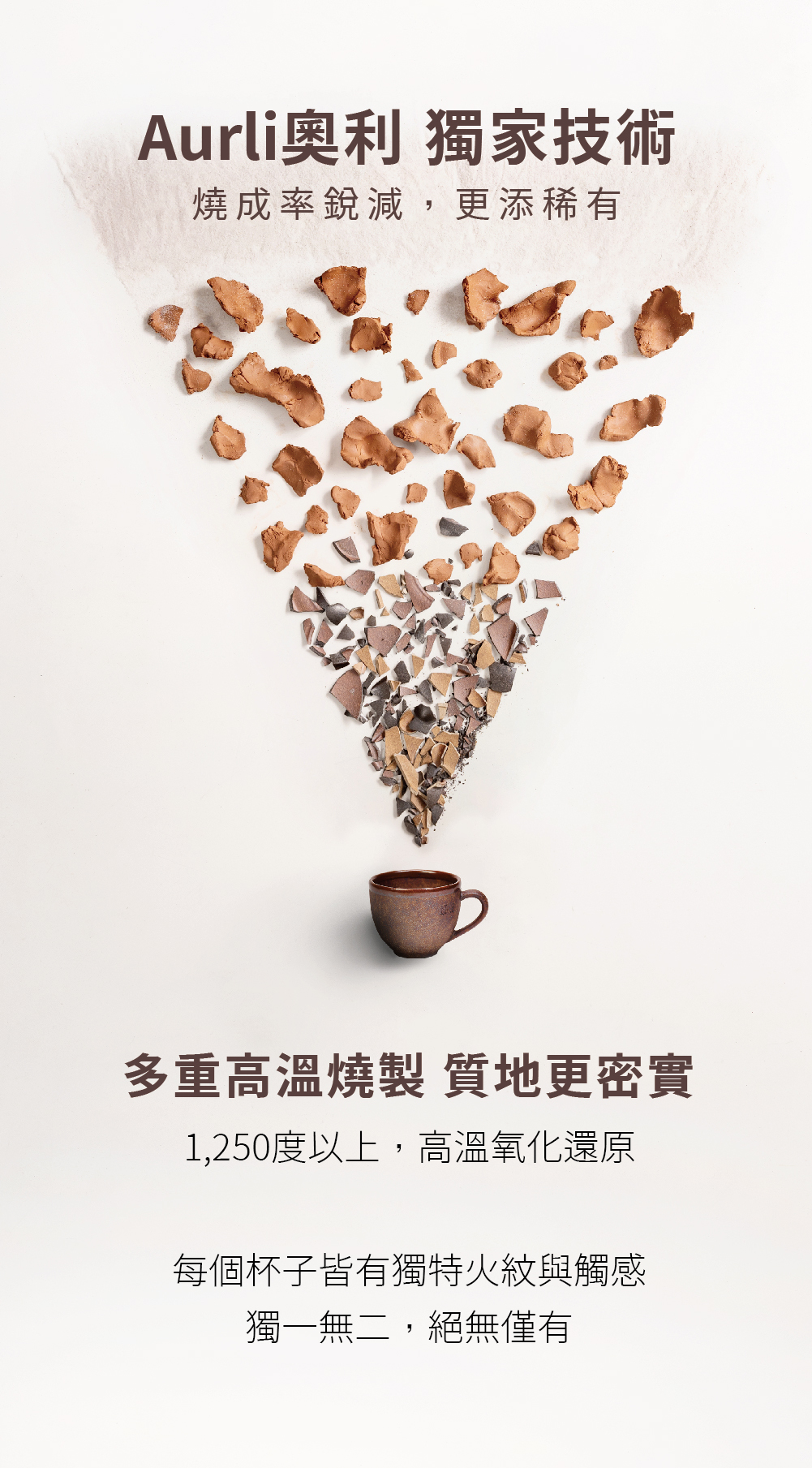 透過高溫氧化與多重還原燒製歷程,淬鍊出世界第一個岩礦與陶土融合的老岩泥咖啡杯
