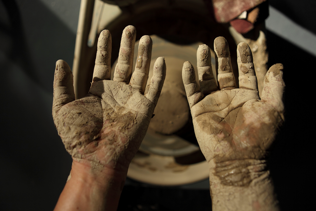 宗裕,家住臺北社子島,每天騎六十分鐘的機車來汐止上班,不管風雨,20 多年來始終如一。從事噴釉和裝窯,極需高度經驗和細心態度。看著坯體進窯前和出窯後,如想像般完美時,心中那份喜悅總能洗滌一身疲憊。「那是大家花時間做出來的,有大團隊的影子,是有情感在裡面」。