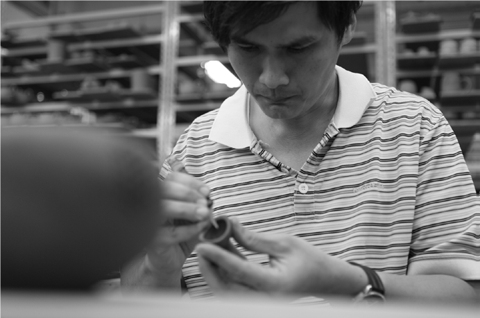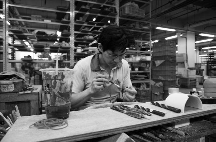 明崇,純熟的動手、低調又穩健的身手,跟著創辦人從工作室時期一路到現在,20 多年的資歷在他身上絕對看得出來。 颱風淹水那年,跟老闆一起投入廠辦複健,以及趕著日本訂單的出貨……,除了技藝的學習外,真實穩健的職場觀念,更是令人難忘的一個態度。
