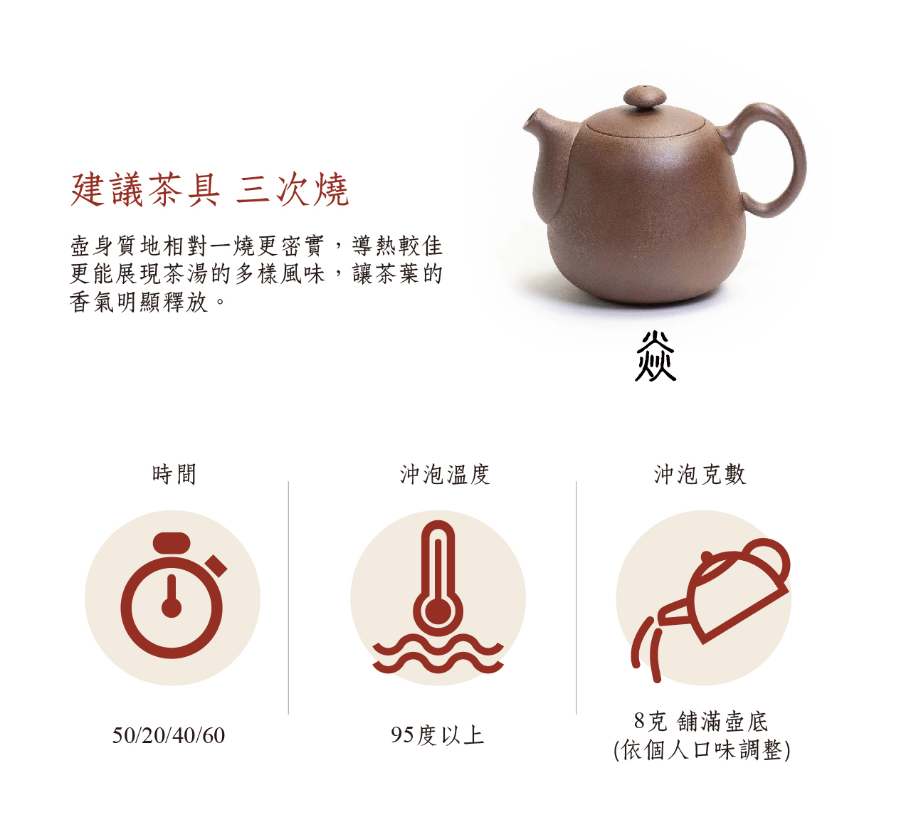 建議茶具: 老岩泥三燒、懷汝及常贏系列茶器具